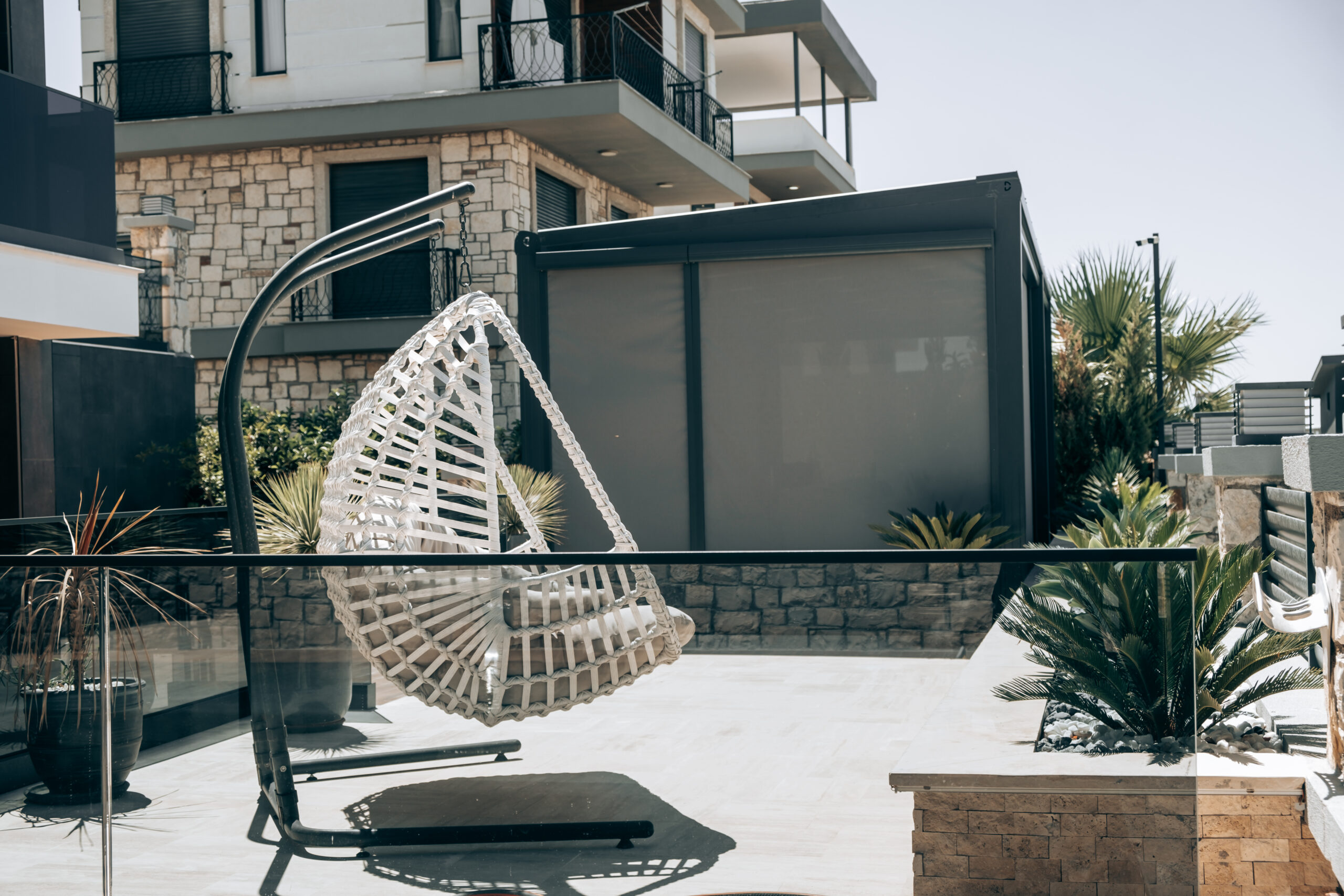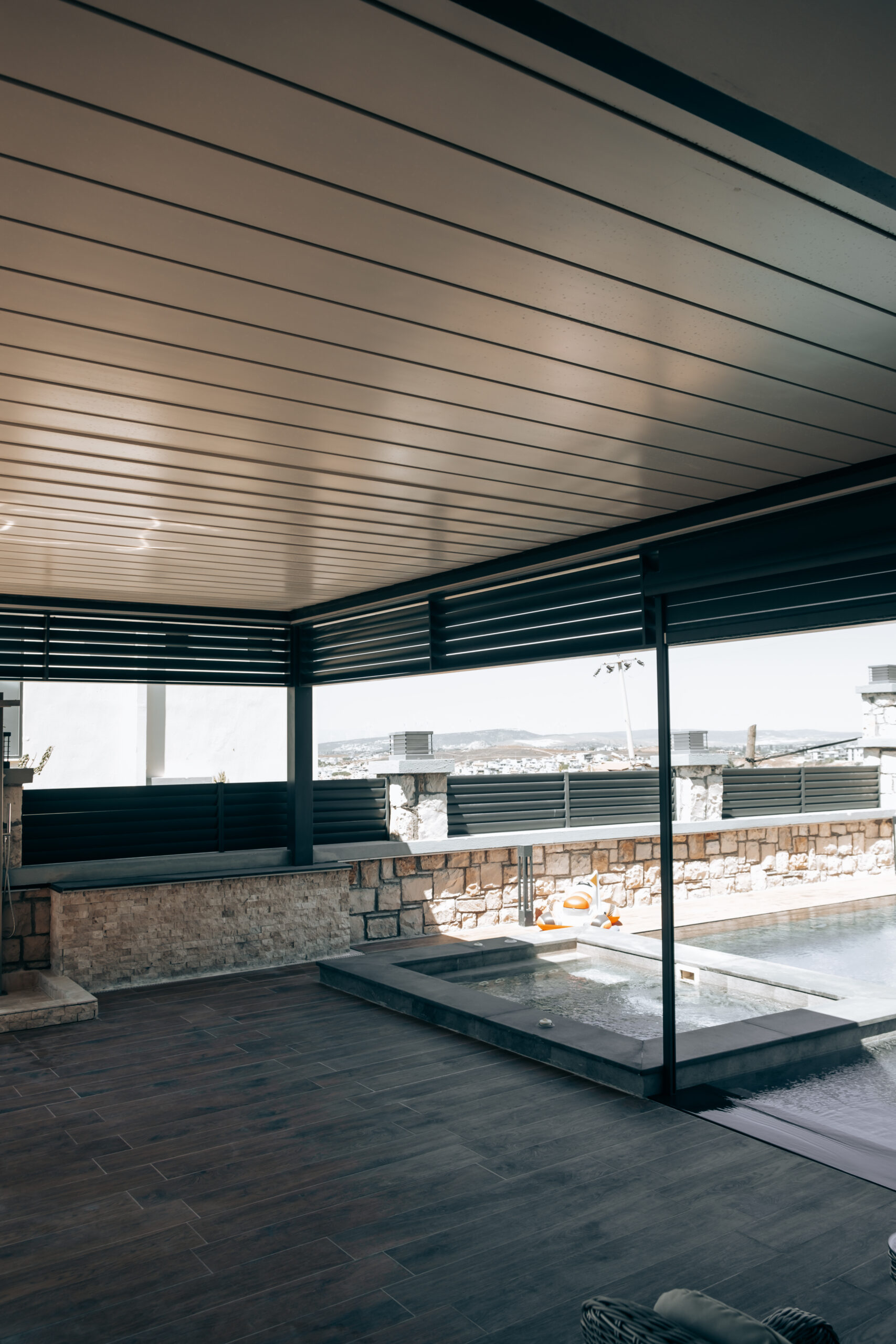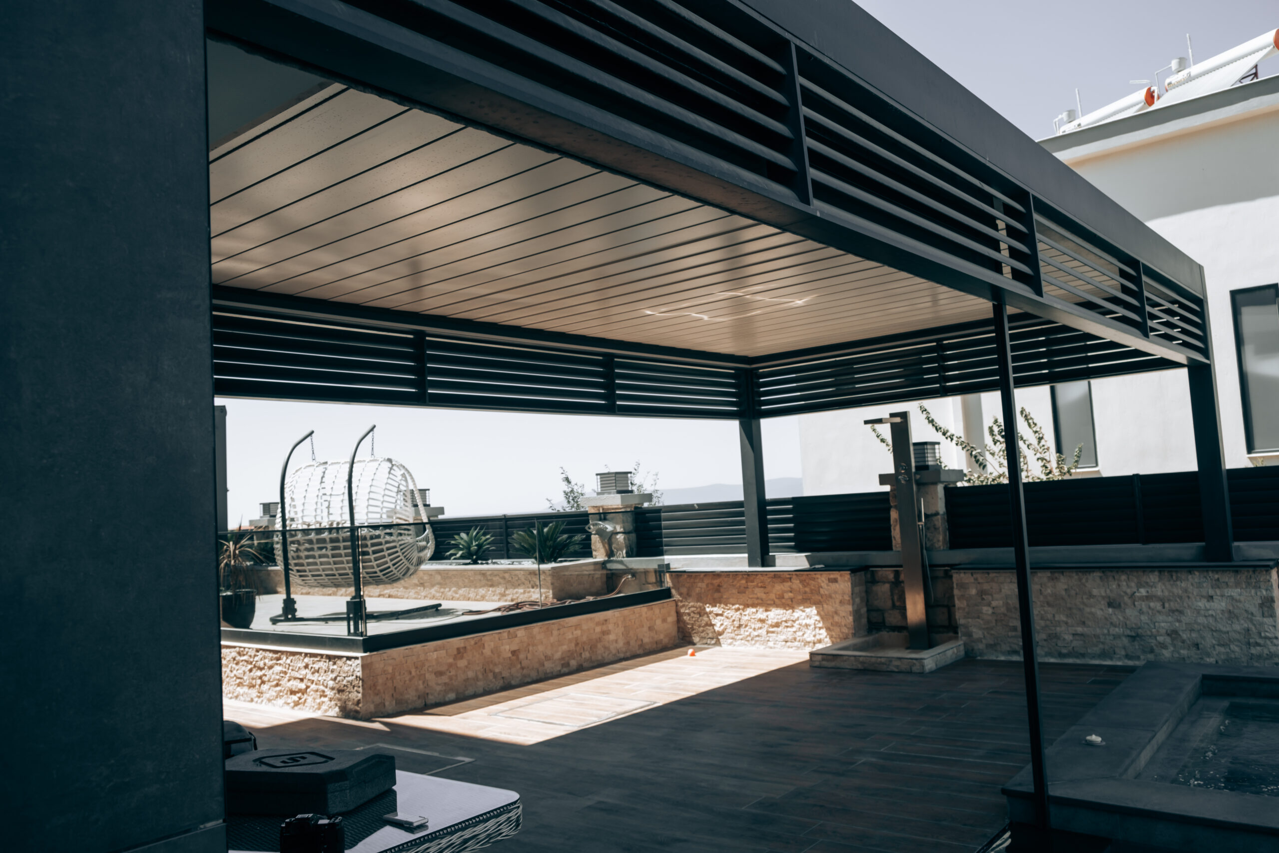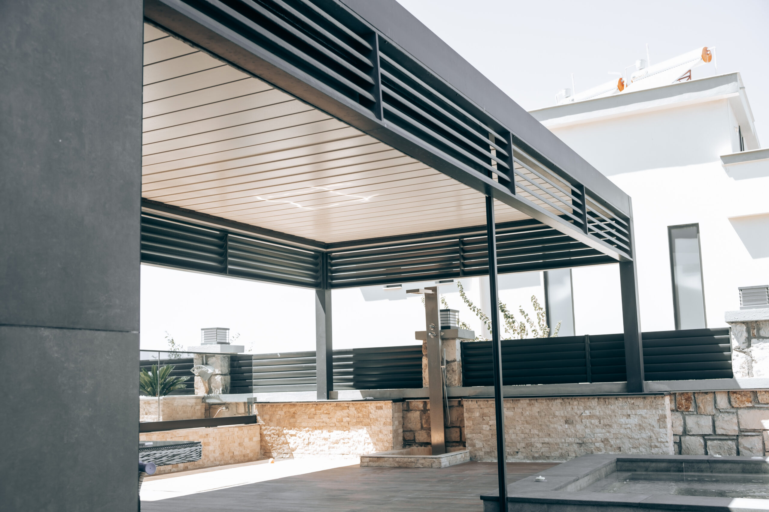 Açık alanları dört mevsim kullanılabilir hale getiren pergola sistemleri, motorlu hareketli tavan yapısıyla konforu ve modern tasarımı bir araya getirir. Su ve güneş yalıtımına uygun olarak tasarlanan pergolalar, alüminyum ve dayanıklı kumaş malzemeleriyle uzun ömürlü kullanım sunar.